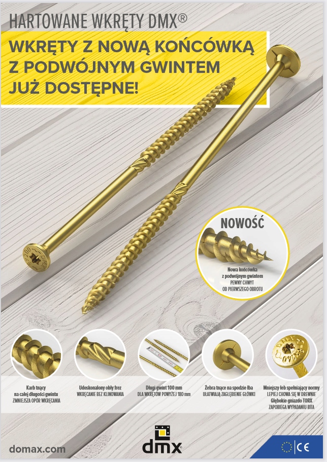 Wkręty zostały wykonane zgodnie z wymogami normy PN-EN 14592:2008+A1:2012 co poświadcza Deklaracja Właściwości Użytkowych